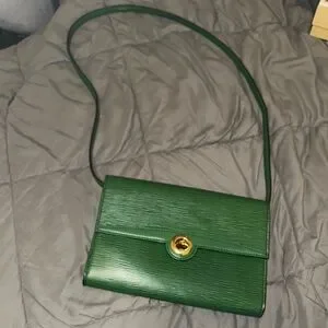 Louis Vuitton Green Crossbody Bag with Gold Clasp. Comes with COA. PRE-OWNED.