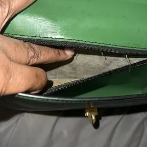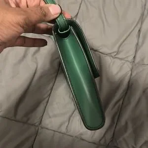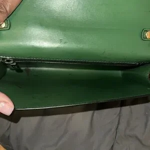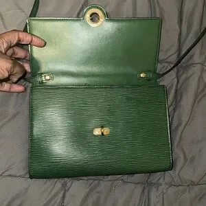 This luxurious Louis Vuitton crossbody bag features a rich green hue and a sleek, structured design. Crafted from high-quality materials, it boasts a gold clasp and a convenient flap-over closure. Perfect for adding a touch of elegance to any ensemble. Call outs: Inner zipper slightly sticks. And pocket of the bag is sticky and appears to be missing the liner. Please read description about the bag and look at photos before purchasing. May also have a slight little rip on the corner. Great condition and usable, Also inside and outside bag may have stains and scratches; may have ink stains inside and outside bag; corners of bag may have rubbing/peeling; hardware may have some tarnishing. (PROJECT BAG). Bag strap and bag may have some signs of cracks/ rips/ torn. Hardly noticeable.