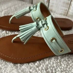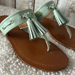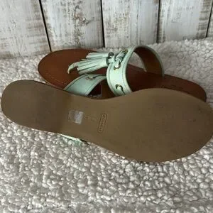Step out in style with these Coach mint green tassel sandals. Perfect for adding a pop of color to any outfit.Womens size 8 comes with original box Gently used condition Please review all photos carefully as they are part of the description. Purchased from a retail store and from my personal collection.