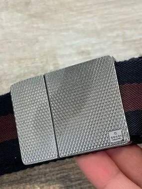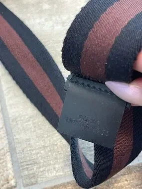 Gucci Canvas Two Tone Brown Black Stripe Web Adjustable Belt Metal Buckle Mens