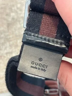 Gucci Canvas Two Tone Brown Black Stripe Web Adjustable Belt
