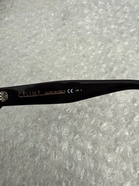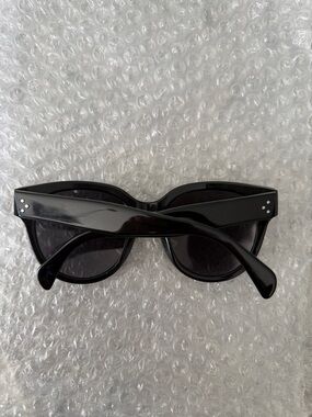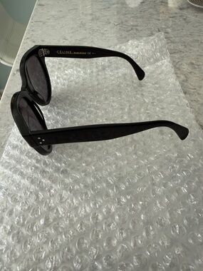 Celine 3 dot black oversized sunglasses. Made famous by Anna Delvey. Please see all photos. Glasses are in fair condition there is a small scratch on the left lense and some distortion in the polarized layer. Does not affect vision when wearing.