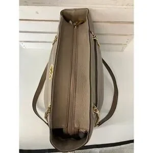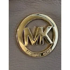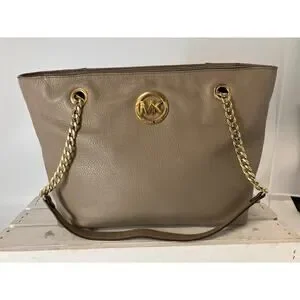 MICHAEL KORS, LARGE TAUPE, GRAY PEBBLED LEATHER SHOULDER BAG