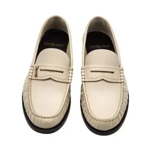 Saint Laurent Le Loafer YSL Monogram Leather Loafers Marble White - New $1050