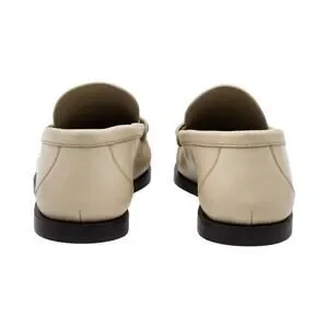 Refined and effortlessly chic, these Saint Laurent Monogram Leather Loafers in marble white embody the brand’s timeless Parisian sophistication. Expertly crafted in Italy, they feature smooth calfskin leather with the signature gold-tone YSL monogram across the vamp. The minimalist silhouette and low stacked heel make them a versatile choice for both elegant daywear and polished evening looks.
