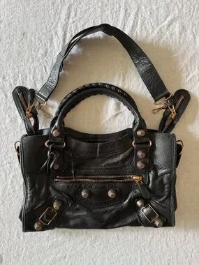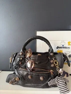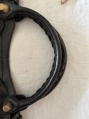 From 2011 collection rare giant Rose Gold hardware. One of the last bags from Nicholas Ghesquiere era Balenciaga. Know your Balenciaga sizing and history, Leather is still super smooshy, no bad smells, still smells like the amazing chèvre that it is, corners still pretty dark. I've tried to show the discoloration in the rose gold as best as possible. This was a character flaw in the hardware and noted when I spoke with many SAs at Balenciaga over the years.
