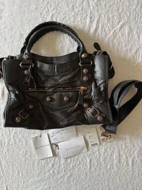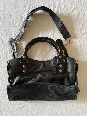 Balenciaga Giant 21 Rose Gold Hardware Black City Shoulder Bag. Rare