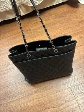 CHANEL Black Quilted Leather Tote with Chain Handles