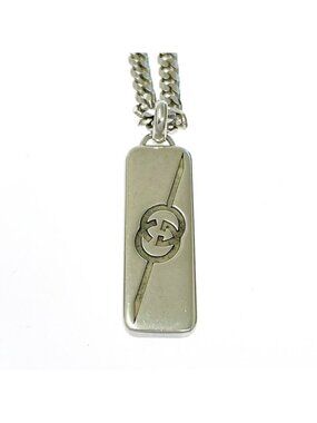 This is an authentic Gucci Necklace in silver-toned metal. The necklace features the iconic interlocking 'G' emblem that is engraved onto the pendant, showcasing Gucci's signature branding and design.