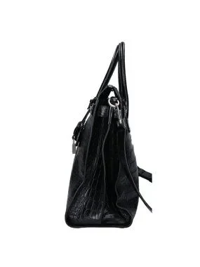 This is an authentic Saint Laurent Paris Black Croc Sack 2-Way Bag. This structured leather tote features a crocodile-embossed exterior, top handles, and an adjustable shoulder strap for versatile carrying options.