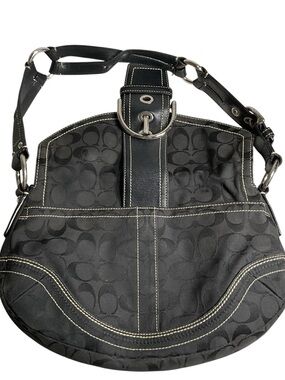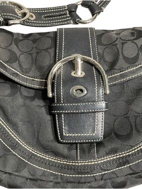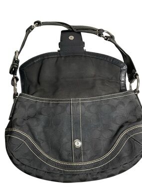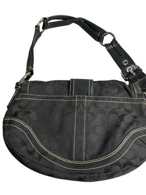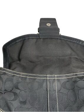 Coach Black Signature Canvas Buckle Hobo Shoulder Bag