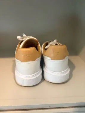 Premium white leather low-top sneakers with embossed patterning. Clean silhouette with cushioned insole for all-day comfort. Lace-up closure ensures a secure fit. Subtle embossed logo detail adds refined style.