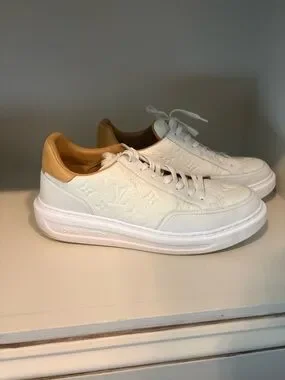 White Mens Louis Vuitton Leather Low-Top Sneakers - Luxury Embossed Design