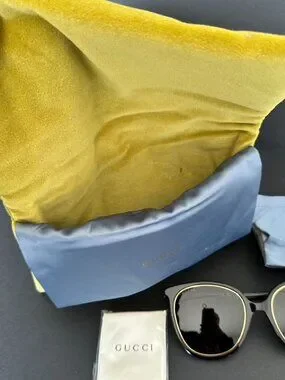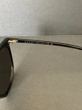 Light and easy to wear cat eye shape in full acetate with the GG interlocking logo on the temple. It features a metal rim on the front and some SKUS have a gold-tone clean and very fine chain that can be easily removed.