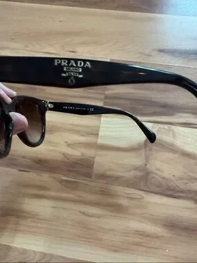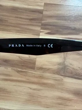 Sleek cat-eye silhouette from Prada. Dark tinted lenses for sun protection. Polished frames for a chic look. Versatile style for everyday wear.