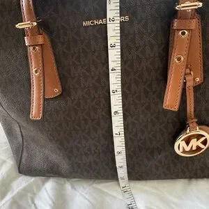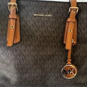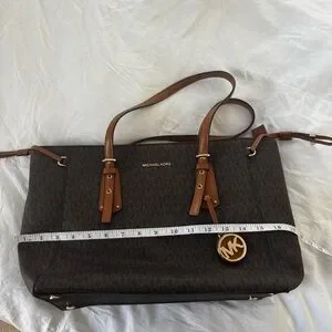 Michael Kors Voyager medium logo tote bag in the brown signature print with acorn leather accents and gold-tone hardware. Great condition as it was hardly used.