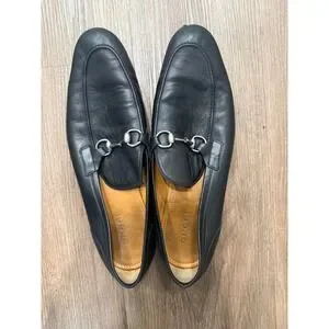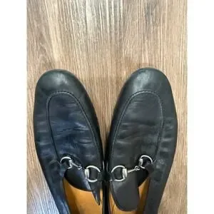 Gucci Mens Black Leather Horsebit Loafers Silver Hardware Made in Italy 12.5