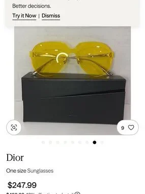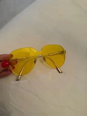 Dior Yellow Rimless Sunglasses with Gold Accents