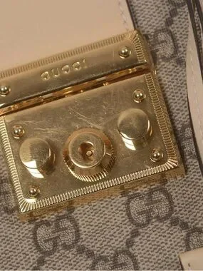 ♥️Gucci Padlock Beige GG Supreme Canvas Shoulder Tote with Gold Chain Handles♥️