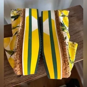 Dolce & Gabbana Yellow Lemon Print Platform Espadrilles