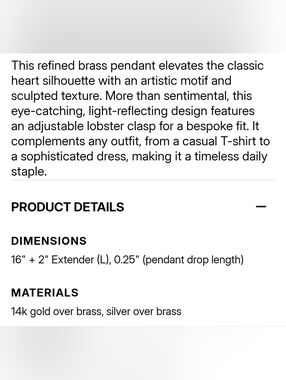Coach gold-tone heart pendant necklace featuring a raised 'C' initial. Simple curb chain and polished finish. Classic, wearable piece for everyday styling.