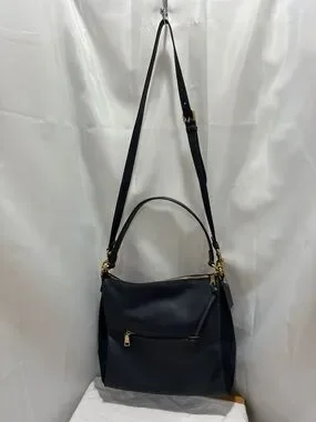 Sleek dark, navy blue pebbled leather shoulder bag with gold-tone hardware. Spacious main compartment and front zip pocket for easy organization. Comfortable single shoulder strap for everyday use. Stylish, versatile, and polished for daily wear. NWT