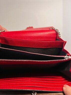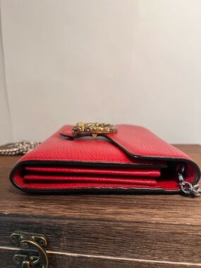 Preloved Gucci Dionysus Leather Chain Wallet in red in good condition with dust bag. See photos for callouts.