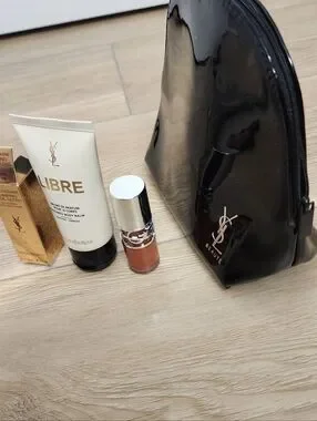 New Ysl Black Patent Leather Makeup Pouch Bag + 2 Pcs Makeup Skincare gift set