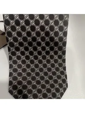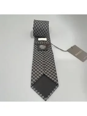 NEW WITH TAGS Gucci Men's Black & Gray Logo Argyle Silk Tie $249