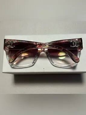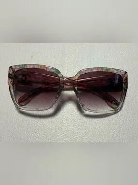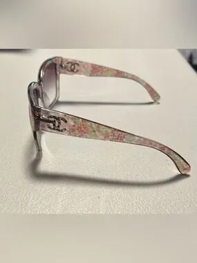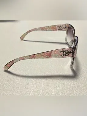 Trendy Chanel women's sunglasses with a multicolor acetate frame and pink gradient lenses. Lightweight and fashionable design for everyday wear. Adds a chic pop of color to any outfit.