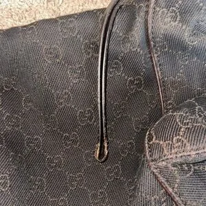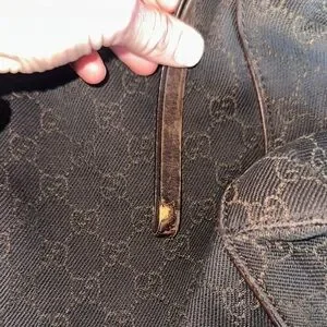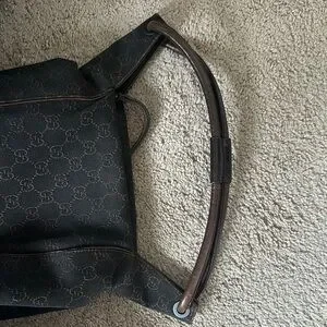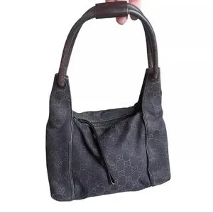 Gucci GG Vintage Canvas Zippered Hobo Bag Black Brown