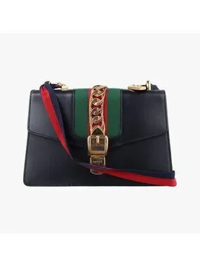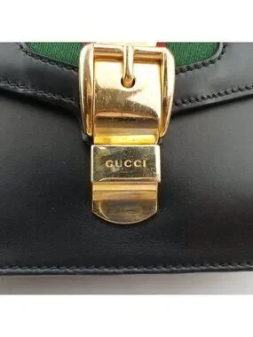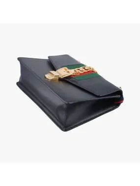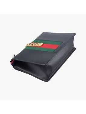 Gucci Sylvie Black Green Red Leather Messenger Bag