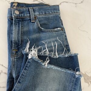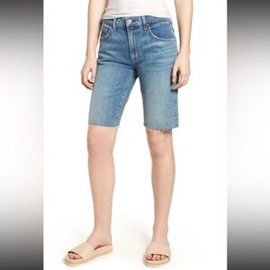 7 FOR ALL MANKIND High Waist Bermuda Denim Shorts Size 26 Medium Wash Raw Hem