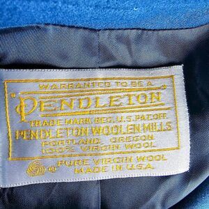 This vintage Pendleton trench coat in jade blue is a must-have for any fashion-forward woman. The oversized coat is made of 100% wool, making it perfect for chilly weather.