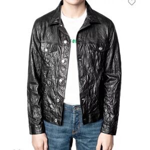 $768 Zadig & Voltaire Crinkle Leather Jacket NWT XXL missing one button