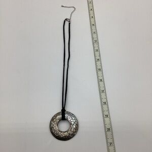 Lady Remington Abalone Green Circle Pendant Necklace Black Suede Cord