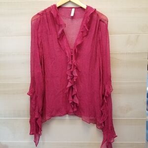 {8} Bec + Bridge Pink Party Shirt Ruffle Button Sheer