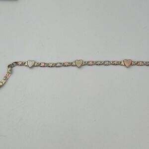 8" Italian 18K Solid Gold Tri Color Heart Bracelet 4.52g 750 Italy Textured