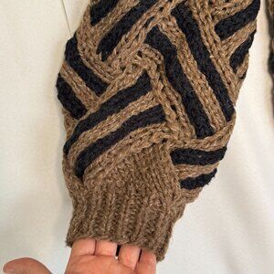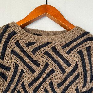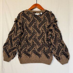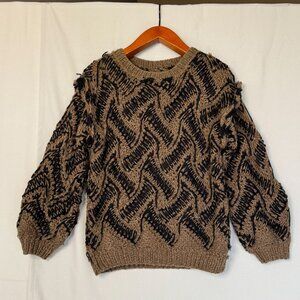 80s Vintage Saturdays Black Brown Twisted Chunky Knit Ballon Sleeve Sweater Size Medium