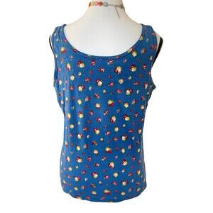 `1) 90'S 100% COTTON RALPH LAUREN BLUE FLORAL TANK MEDIUM.