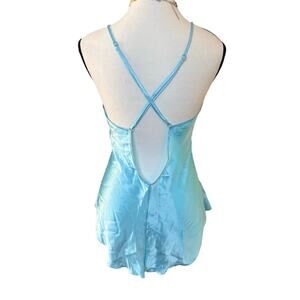 2) Y2K VTG. FREDERICKS OF HOLLYWOOD BABY PASTEL BLUE SATINY LACE BOW CAMI TOP MEDIUM EUC. STUNNER!!
