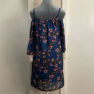 💜 A. Byer Off The Shoulder Printed Shift Dress with Lace