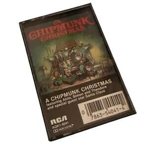 Vintage A Chipmunk Christmas cassette by Alvin & The Chipmunks (RCA, catalog AOK1-4041). Comes in original case, artwork, and inlay.
