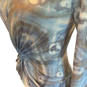 ACOA Womens Blue Marbled Mesh Long Sleeve Shirt Size Small Rave Clubbin