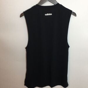 Adidas oversized muscle loose fit tank top. In great used condition. Lightweight polyester fabric. Please note, fabric is polyester but to me it feels like a cotton polyester blend. This is not a traditional polyester dri-fit type of fabricMeasurements in photos. At first I thought this was a men’s piece because it is oversized, but in doing research it is actually a woman’s piece and meant to be oversized and slouchy. Great for over top of a sports bra.