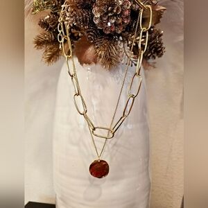 ADORNIA Gold plated large chain & coin layered Necklace.