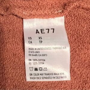 AE 77 by American Eagle Distressed Waist-Length Crewneck Sweatshirt in a pretty Caramel/Terra Cotta Color. Size XS. New with tags.