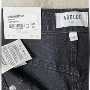 AGOLDE Cherie High-Rise Distressed Pinch-Waist Straight-Leg-Raw Hem. Size: 25
