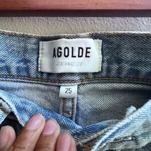 AGOLDE High Rise Straight Leg Blue Jeans Women's 25 Light Wash Distressed