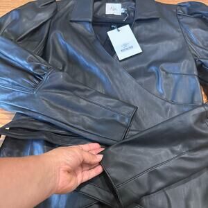 AJE. faux leather Idyllic Wrap Long sleeve Top in Color Black size 12 / Us 8